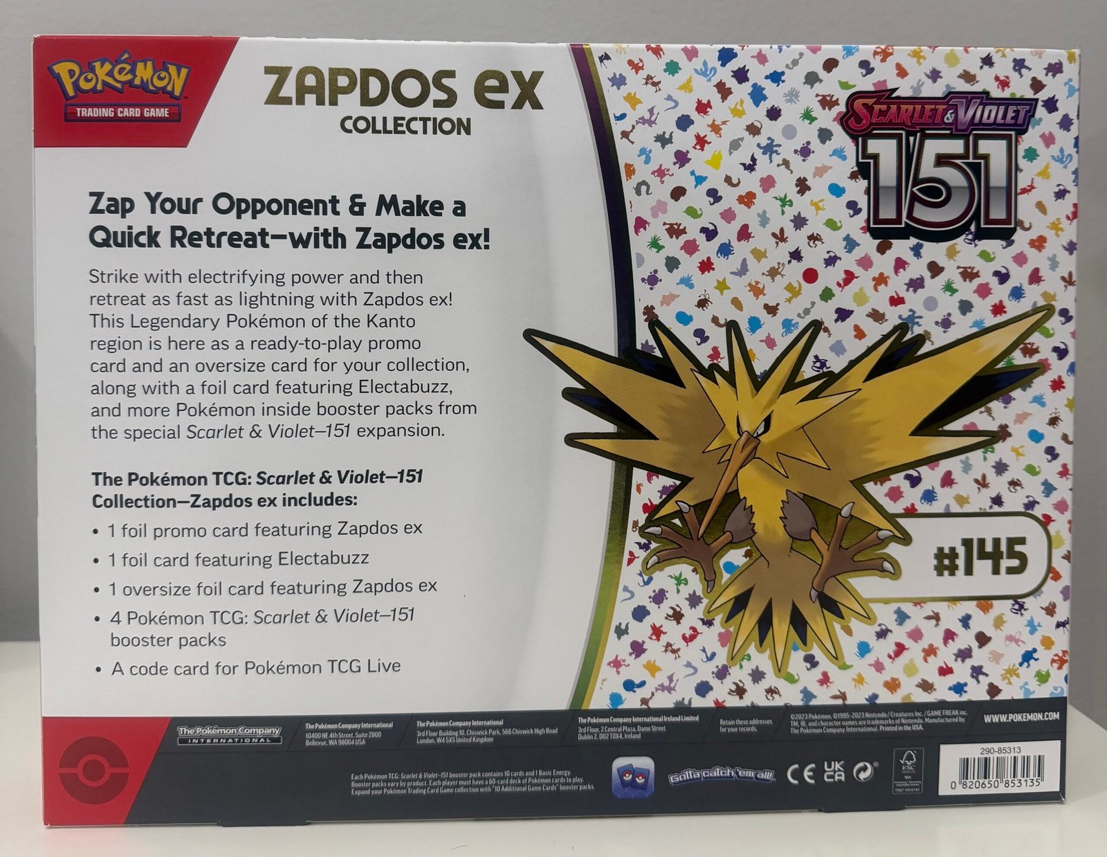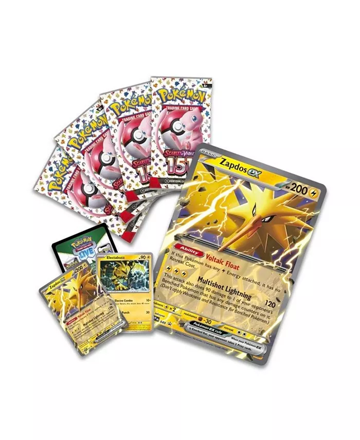 Unleash the legendary power of Zapdos EX with this Scarlet & Violet 3.5: 151 Collection from the Pokémon TCG! Perfect for collectors and competitive players, this set features exclusive Zapdos EX cards, premium booster packs, and collector-grade packaging designed to elevate your Pokémon experience.